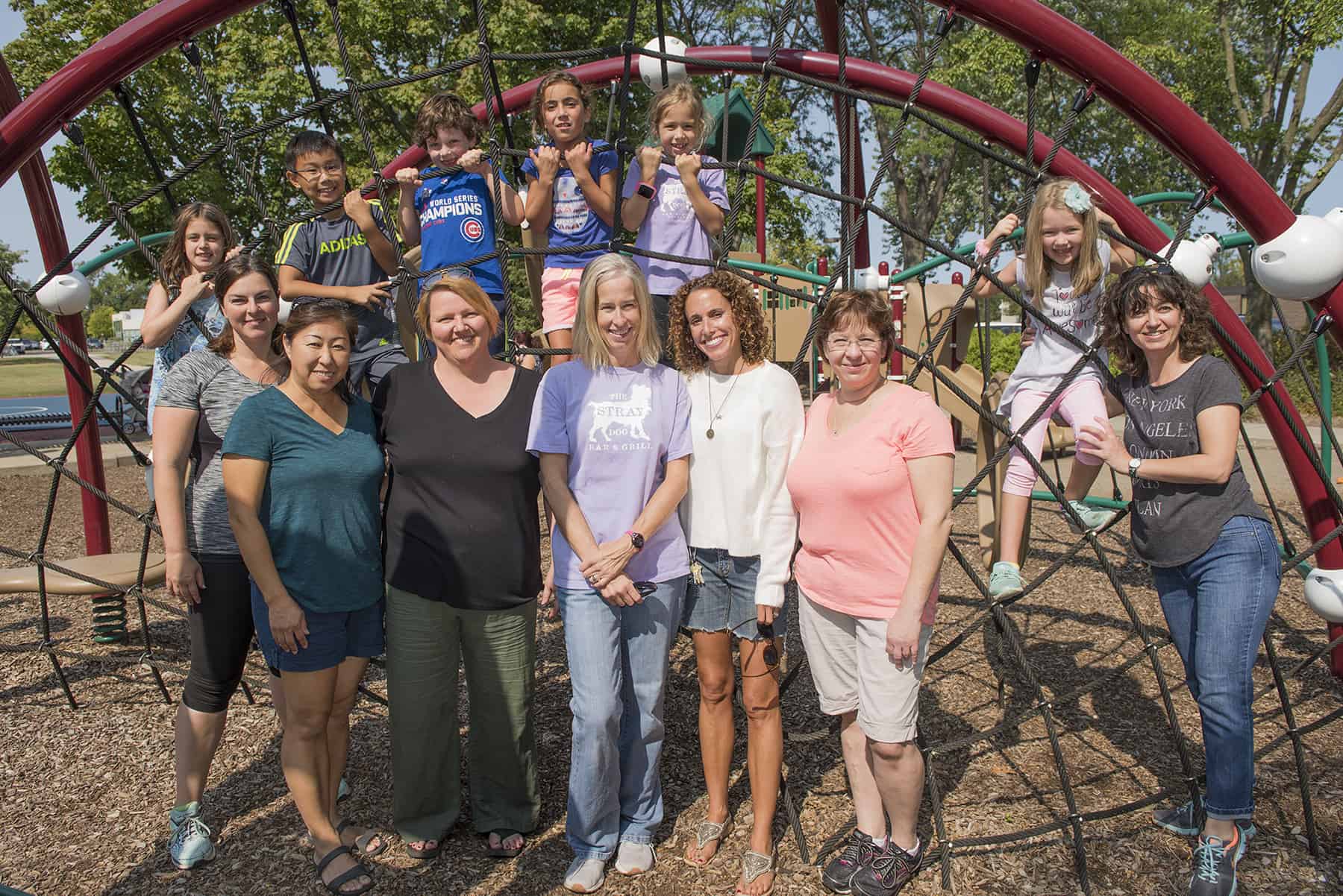 Group of friends gathered together on the playground at Indian Ridge Park