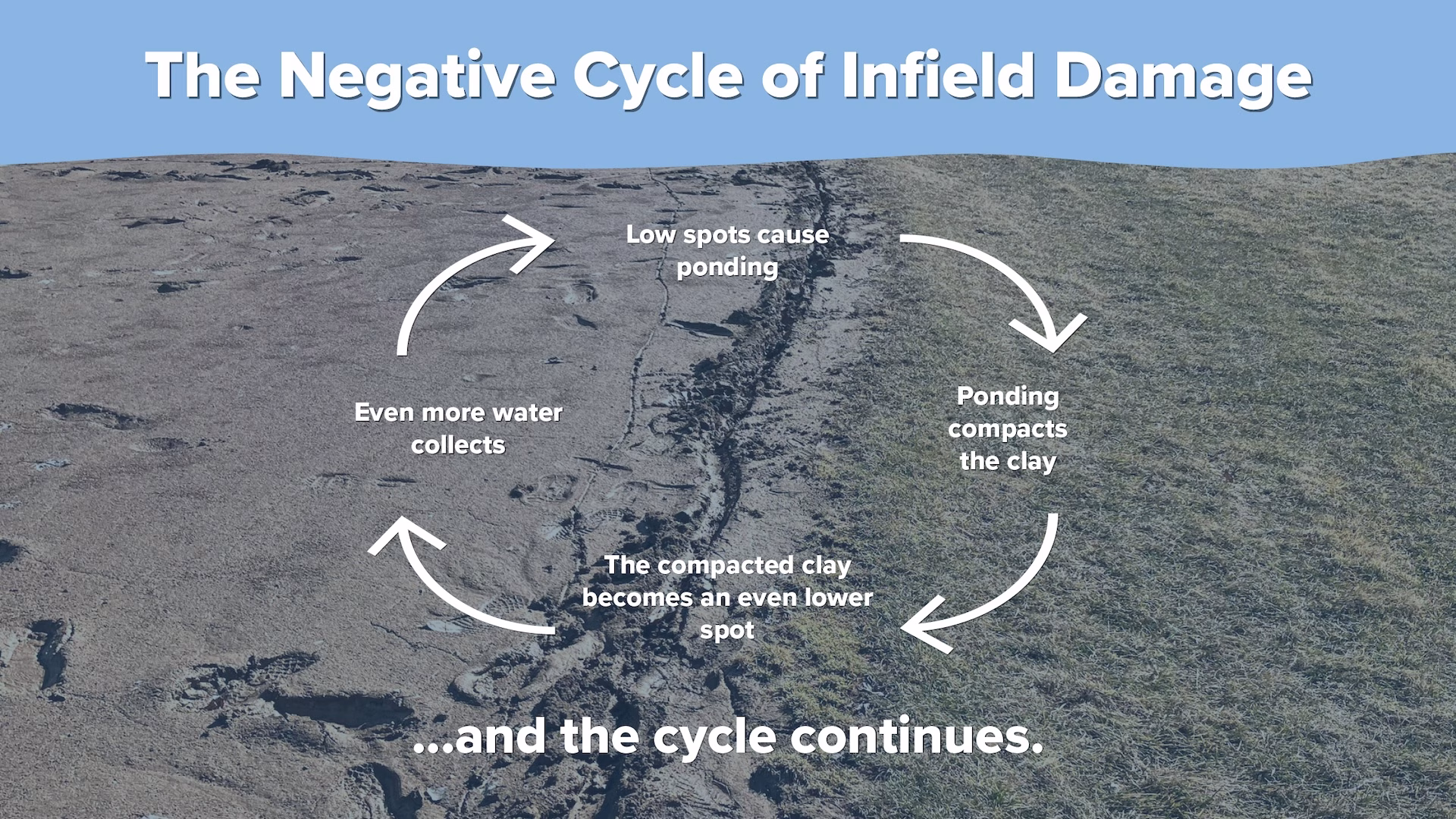 Over time, repeated clay buildup creates a higher turf line, changing the grade of the field, reducing surface drainage and causing even more long-term issues.