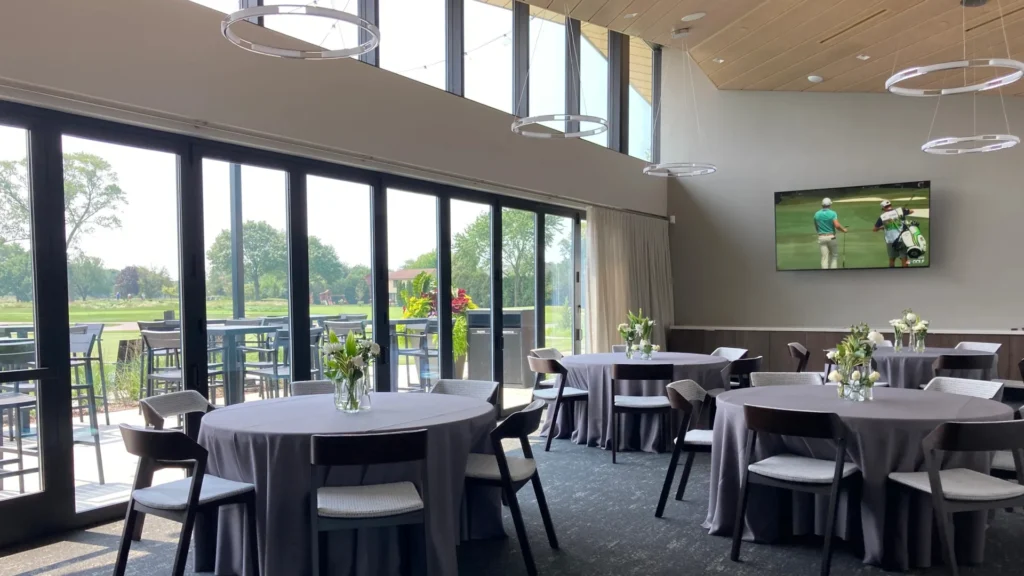 Whether you choose to dine in the indoor space or on the terrace, guests will experience exceptional dining and top-notch service. The stunning views of the course provide a perfect atmosphere for unwinding on the expansive terrace, perfect for your pre or post-meal cocktail by the firepit.